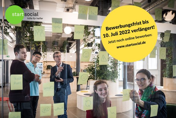Bis zum 10. Juli 2022 können sich soziale Initiativen auf startsocial.de wieder für eines von 100 Beratungsstipendien bewerben. Alle 100 Stipendiaten erwartet eine kostenlose, viermonatige Beratung durch zwei erfahrene Fach- und Führungskräfte. Mitmachen können alle, die soziale Probleme und Herausforderungen mit Hilfe von Ehrenamtlichen anpacken – unabhängig davon, ob sie nur eine Idee verfolgen oder bereits eine etablierte Organisation sind. 25 herausragende Initiativen werden auf einer feierlichen Preisverleihung in Berlin im Sommer 2023 geehrt. Sieben von ihnen erhalten zusätzlich Geldpreise im Gesamtwert von 35.000 Euro.