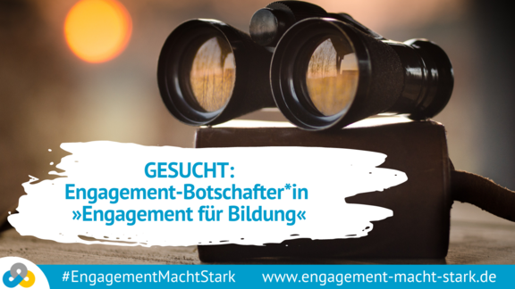 Für die Kampagne "Engagement macht stark!" wird wieder eine Engagement-Botschafterin oder ein Engagement-Botschafter gesucht! Bis zum 31. März 2023 können ehrenamtlich Aktive noch nominiert werden, die sich auf nachahmenswerte und innovative Weise in den diesjährigen Themenschwerpunkt "Engagement für Bildung" einbringen. Sie haben bereits eine geeignete Kandidatin oder einen geeigneten Kandidaten mit einem vorbildlichen Einsatz für die Gesellschaft im Sinn? Dann nutzen Sie das Web-Formular der Kampagne "Engagement macht stark!" für die Nominierung als Engagement-Botschafter*in.