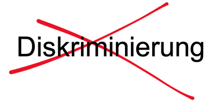 Zu sehen ist das Wort Diskriminierung. Es ist mit zwei roten Strichen durchgestrichen.