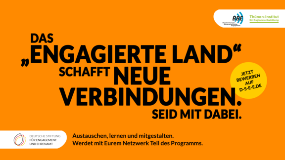 Mit dem Programm unterstützt die Deutsche Stiftung für Engagement und Ehren-amt gemeinsam mit ihren Partnern – dem Bundesnetzwerk Bürgerschaftliches Engagement und dem Thünen-Institut für Regionalentwicklung – die Entwicklung von Engagement-Netzwerken in strukturschwachen ländlichen Räumen. Denn: Wenn Engagierte, Unternehmen und Verwaltung an einem Strang ziehen, entwickeln sich vielfältige Ideen und großartige Dinge entstehen.
